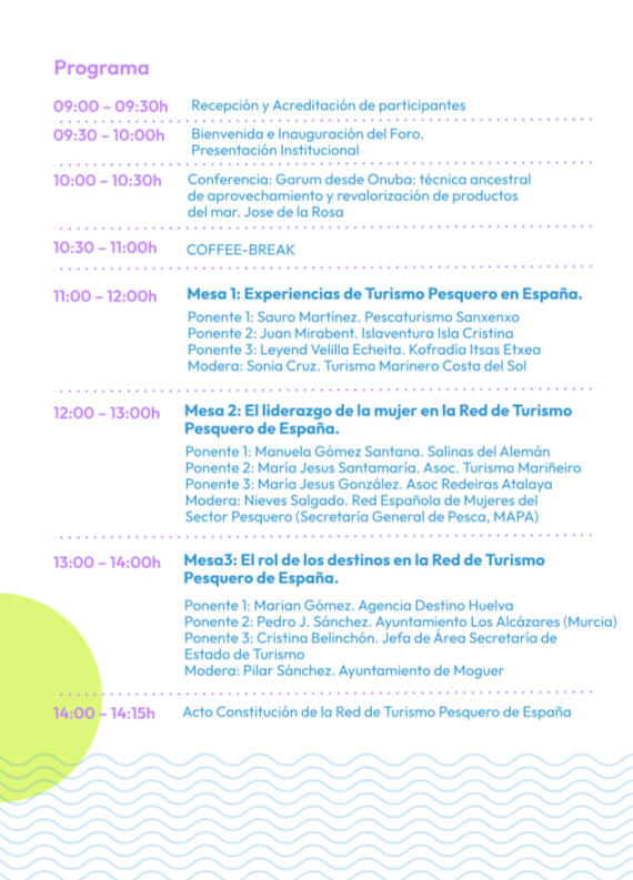 El programa del foro reunirá a algunas de las empresas, destinos y profesionales más relevantes del panorama nacional, quienes compartirán las claves, aprendizajes y retos que han afrontado para posicionarse como referentes del turismo pesquero en sus territorios.También se abordará el papel del liderazgo femenino en este sector, así como las oportunidades que abre la red para avanzar hacia un modelo turístico más justo, enraizado en el territorio y abierto al futuro.
